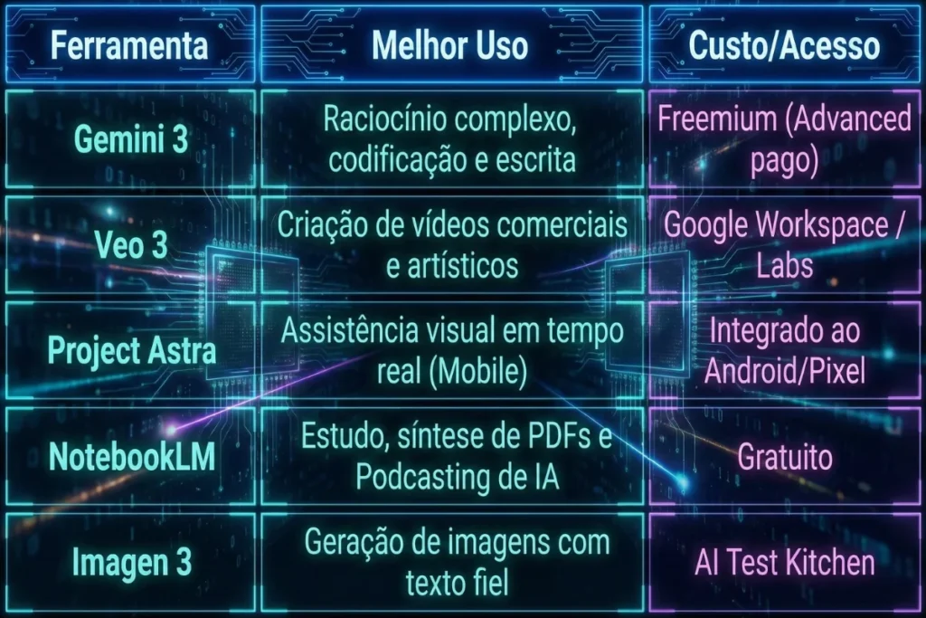 Portanto, as IAs mais avançadas do Google em 2025 deixaram de ser apenas “chatbots” para se tornarem motores especializados de criação e análise. A liderança foi retomada não pela quantidade de ferramentas, mas pela integração inteligente entre elas.